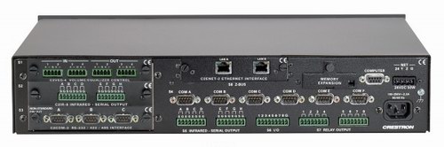 快思聰2-系列旗艦產品PRO2用于滿足大中規模商業和家居控制應用的需要。6個內置的COM端口、8個紅外/串行端口、8個I/O多用端口以及8個絕緣繼電器為控制多種設備提供了基本的接口,這些設備包括視頻投影儀、等離子顯示器、轉換器、VCR、DVD播放器、屏幕、電梯等等。還可以在PRO2的內置Y總線擴展插槽中安裝至多3個Y總線控制卡,從而添加額外的控制端口和其它接口,例如MIDI、DTMF和數字音頻處理。