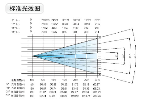 Beam: 5°; 放大角度: 10°-21°線性可調;