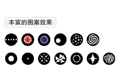 1個固定圖案盤,1個旋轉(zhuǎn)圖案盤;有17個可更換圖案片(可選配),圖案輪有抖動效果及雙向旋轉(zhuǎn)效果