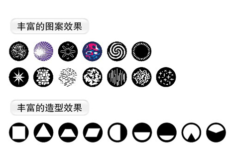 ?可使用金屬圖案片或玻璃圖案片,所有圖案片可供燈光設計師選擇自己喜好的進行替換。