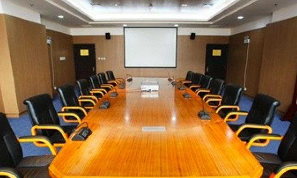 3、圓桌會議室:滿足討論型會議、視頻展播、智能化控 制等,配置有:德國Dynacord擴聲系統、SONY投影系統、 臺電數字手拉手發言系統、快捷智能集中控制系統。