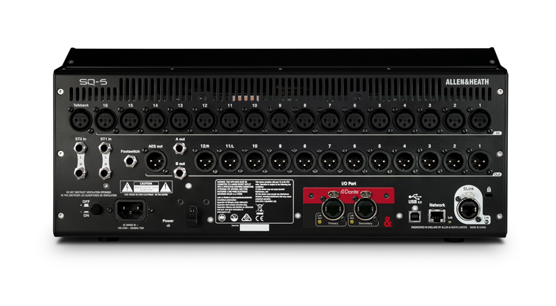 SQ-5擁有足夠的機載I/O。由于具備SLink智能端口,SQ還可以通過大量96kHz和48kHz的擴展機架和舞臺接口箱(如AB168、AR2412、 AR84和DX168),擴展至48路話筒輸入,為擁有其他Allen & Heath數字系統的用戶提供靈活、即插即用的解決方案。您還可以將您的SQ調音臺直接連接至其它SQ甚至是dLive系統。